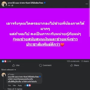 “บอย ท่าพระจันทร์” ได้ออกมาโพสต์ข้อความล่าสุดผ่านเฟซบุ๊ก อรรถวัติ บอย ท่าพระจันทร์ ศิริสิทธิธงไชย ระบุถึงเหตุผลที่ไม่ได้ลงไปช่วยน้ำท่วมภาคใต้ ระบุว่า