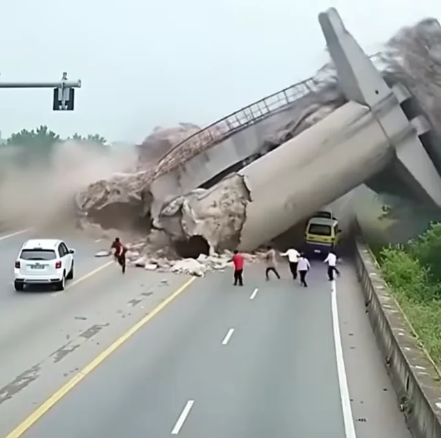 ผลกระทบหลังแผ่นดินไหว: เสาค้ำสะพานพังถล่ม
