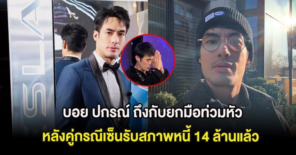 จากกรณีที่ก่อนหน้านี้ทางด้านพระเอกหนุ่มอย่าง บอย ปกรณ์ ได้ออกมาโพสต์ทวงหนี้กลางโซเชียล ล่าสุดเจ้าตัวได้ทำสัญญายอมรับสภาพหนี้ 14 ล้าน กับคู่กรณีเรียบร้อยแล้ว พร้อมเปิดใจเล่าว่า ก็ได้ติดต่อเจอกับบุคคลท่านนั้นเรียบร้อยแล้วครับ ได้มีการมาทำสัญญาตกลงรับสภาพหนี้ ในสัญญาก็จะระบุว่าพี่เขาจะทำการผ่อนชำระผมทั้งหมดกี่งวด งวดละเท่าไหร่ จนถึงเมื่อไหร่