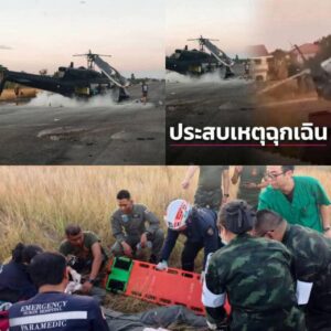 เฮลิคอปเตอร์ทหารไทยปฏิบัติภารกิจบุกกัมพูชา ตกในจังหวัดสุรินทร์! เวลา 17:19 น. ของวันที่ 22 ธันวาคม เฮลิคอปเตอร์ทหารรุ่น HT.212 ของกองบัญชาการทหารภาคที่ 2 ของประเทศไทย สูญเสียการควบคุมและต้องลงจอดฉุกเฉินที่สนามบินสุรินทร์ภักดี จังหวัดสุรินทร์ ทำให้เฮลิคอปเตอร์กระแทกกับรันเวย์ ล้อหลุด หางหัก และลำตัวเสียหายอย่างหนัก รายงานข่าวเบื้องต้นระบุว่า ทหารไทย 3-4 นายได้รับบาดเจ็บเล็กน้อยและถูกนำส่งโรงพยาบาลค่ายวีรวัฒน์โยธินเพื่อรับการรักษา อย่างไรก็ตาม จากภาพที่เผยแพร่ ทหารไทย 3 นายบนเฮลิคอปเตอร์ที่ตกนั้นได้รับบาดเจ็บไม่เล็กน้อย บางนายกระเด็นออกมาหรือตกลงไปในหญ้า จากภาพที่ท