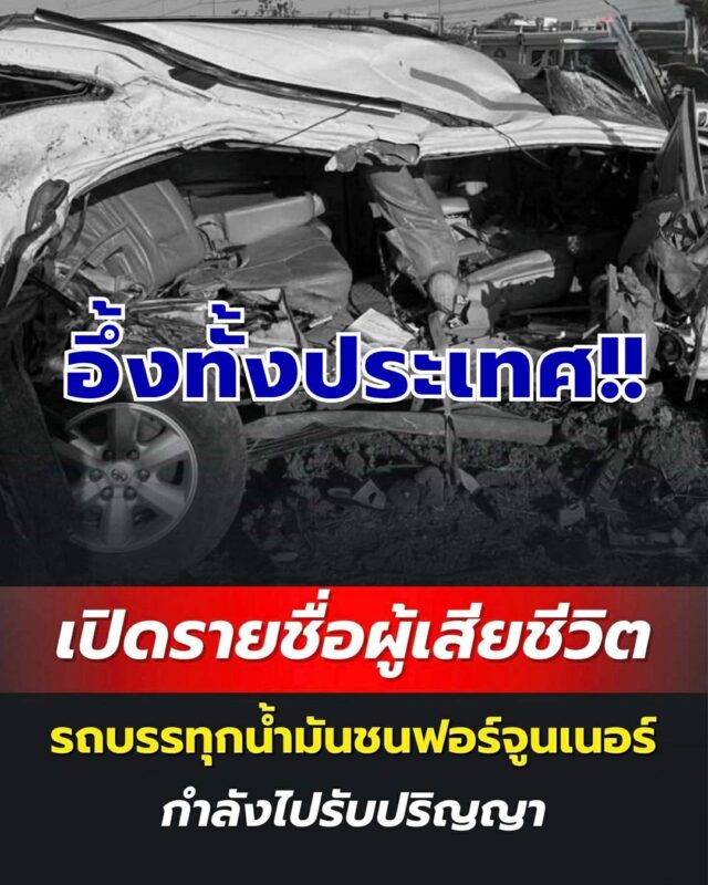 ขณะขับมา มีอาการหลับในเป็นเหตุให้รถชนเสาไฟฟ้าแล้วข้ามเลนชนรถฟอร์จูนเนอร์ ซึ่งมี นายแสงทอง เป็นคนขับ กำลังนำญาติไปร่วมแสดงความยินดีกับลูกหลานรับปริญญาในช่วงสายวันนี้
