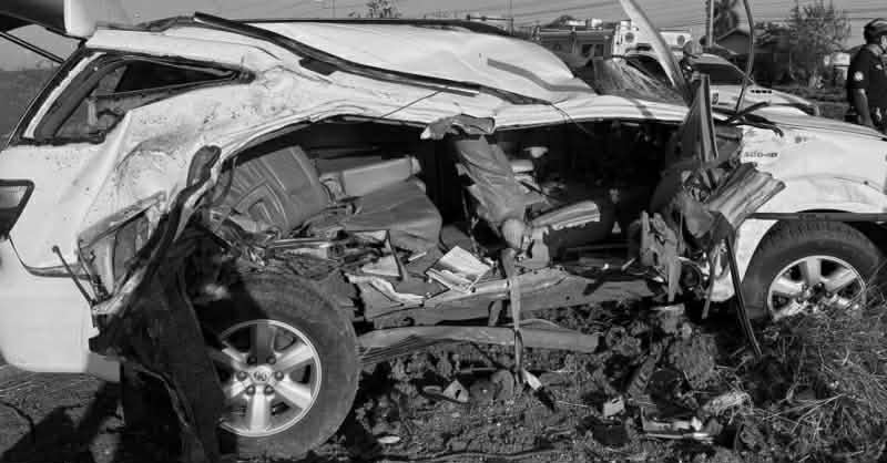 ส่วนรถฟอร์จูนเนอร์ พบร่างผู้บาดเจ็บถูกอัดก็อปปี้ติดคาซากรถ เบื้องต้นเสียชีวิต 4 ราย ทราบชื่อ