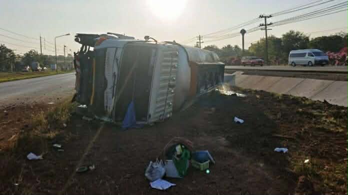 ที่เกิดเหตุอยู่ช่วงขาเข้าพื้นที่ จ.นครราชสีมา บนหลักกิโลเมตรที่ 78+200 ทางหลวงหมายเลข 24 ถ.สีคิ้ว-อุบลราชธานี พบรถบรรทุกน้ำมัน ทะเบียนอุบลราชธานี เสียหลักชนเสาไฟฟ้า ก่อนข้ามเลนพุ่งชนรถยนต์โตโยต้า ฟอร์จูนเนอร์ สีขาว ทะเบียนนครราชสีมา โดยรถบรรทุกน้ำมันพลิกตะแคงข้าง ทำให้น้ำมันดีเซลหลายพันลิตรไหลออกมาตลอดเวลา