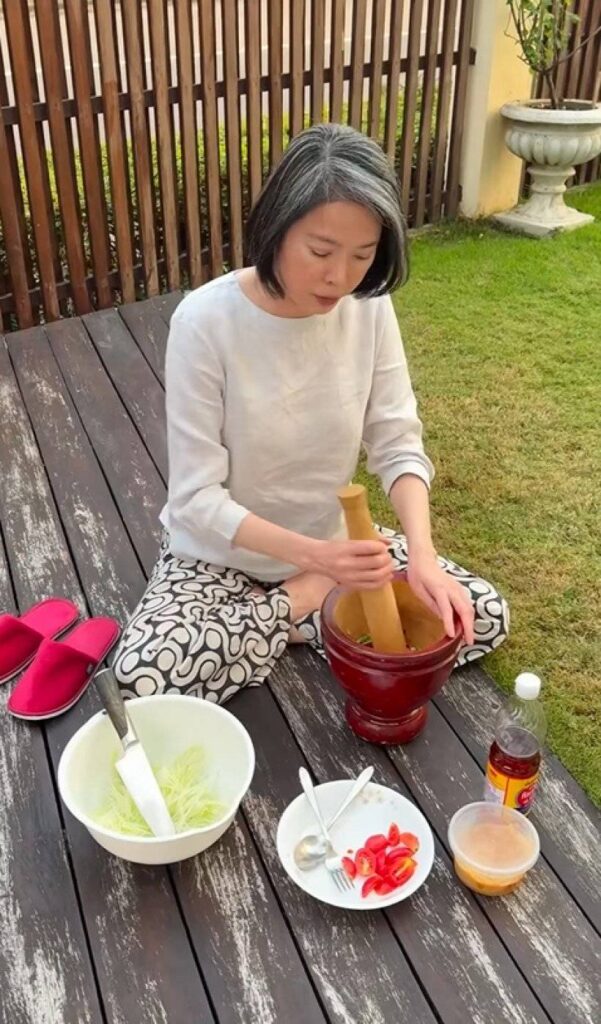 โดยเจ้าตัวได้ระบุแคปชั่นประกอบคลิปที่อ่านแล้วต้องอมยิ้มตามว่า “… ส้มตำ อร่อย เสริฟสามีหลังเลิกงาน” ซึ่งเป็นข้อความสั้นๆ แต่แฝงไปด้วยความน่ารักและความเอาใจใส่ที่เธอมีต่อสามี ถือเป็นการเติมความหวานให้ชีวิตคู่ที่เรียบง่ายแต่น่าประทับใจ