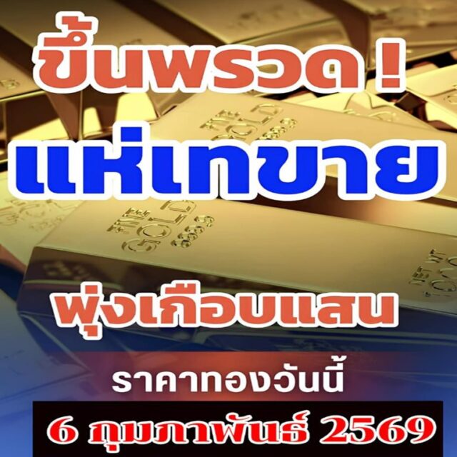 ราคาทองวันนี้ 6 กุมภาพันธ์ 2569 โดย สมาคมค้าทองคำ ประกาศราคาทองครั้งที่ 1 (เปิดตลาด) เมื่อเวลา 09.05 น. ปรับลงพรวดเดียว 1,300 บาท สู่บริเวณ 72,000 บาท