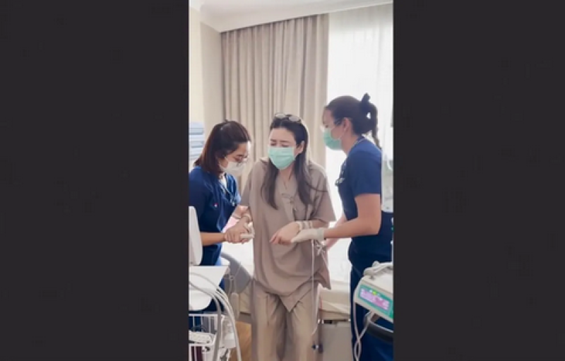 กำลังเข้ารับการรักษาในโรงพยาบาล ด้วยสีหน้าเจ็บปวด ท่ามกลางชาวเน็ตหลายคนต่างส่งกำลังใจ