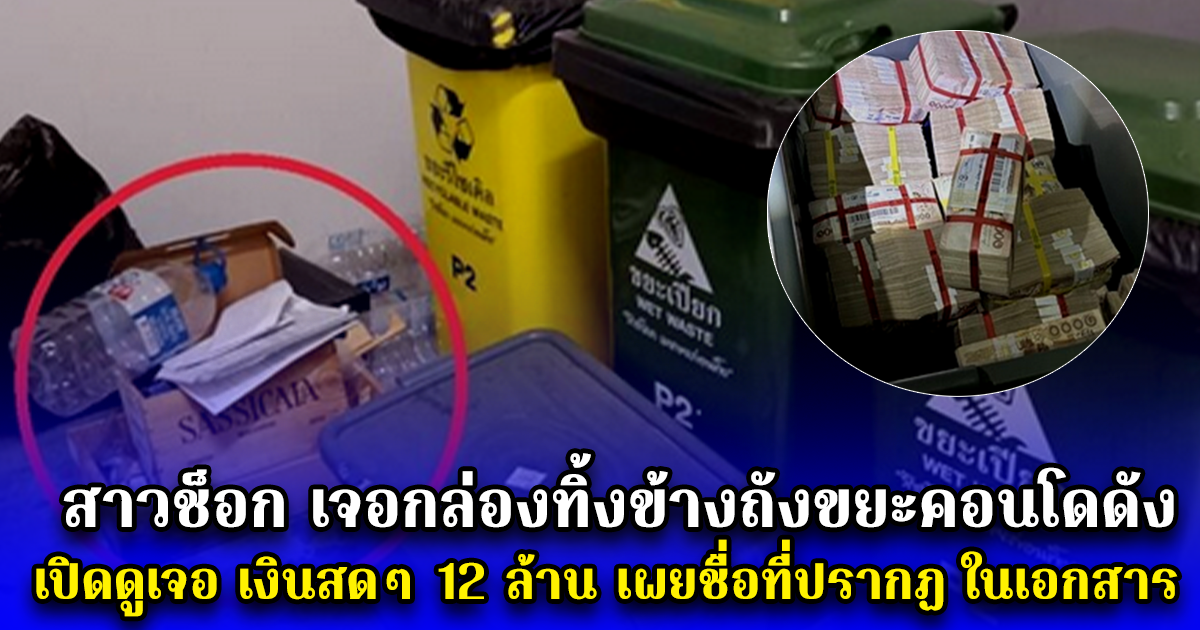 จึงได้หยิบกล่องมาเปิดดูแล้วเทขยะในกล่องทิ้ง จึงพบว่าธนบัตรไทย ฉบับละ 1,000 บาทจำนวนมากอยู่ในกล่องดังกล่าว ด้วยความตกใจที่ธนบัตรมีจำนวนมาก จึงได้รีบโทรศัพท์แจ้งเจ้าหน้าที่ตำรวจให้เข้ามาตรวจสอบ