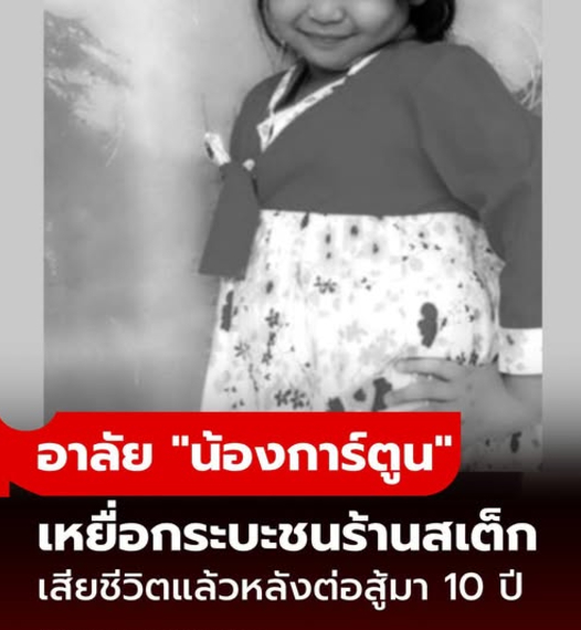 เพจร้านสเต็กคุณแม่การ์ตูน แจ้งข่าวเศร้า “น้องการ์ตูน” จากไปแล้ว หลังถูกคนเมาแล้วขับรถพุ่งชน กลายเป็นผู้ป่วยติดเตียง ต่อสู้อาการบาดเจ็บมายาวนานกว่า 10 ปี