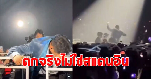 หลังอยู่ๆก็หล่นตุ้บหลุดหายไปจากเฟรมทางเดิน ก่อนจะปีนขึ้นกลับมาร้องเพลงต่ออย่างมืออาชีพ