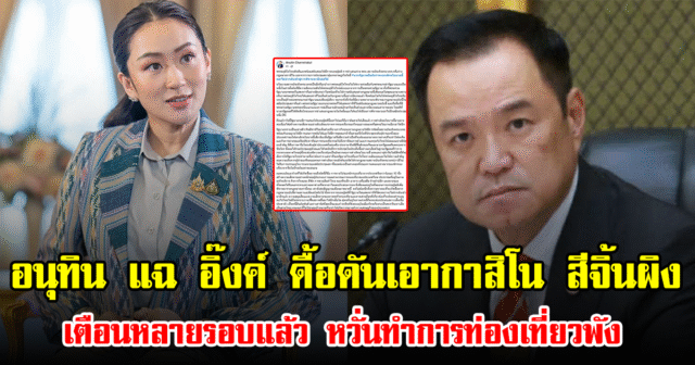 อนุทิน แฉ อิ๊งค์ ดื้อดันเอากาสิโน สีจิ้นผิง เตือนหลายรอบแล้ว หวั่นทำการท่องเที่ยวพัง