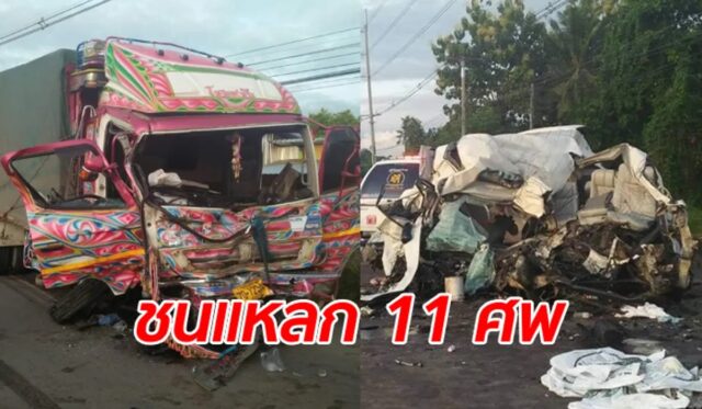 เปิดภาพความเสียหาย รถตู้ขนแรงงานชาวลาวไปต่อพาสปอร์ต พุ่งชนสิบล้อดับ 11 ศพ