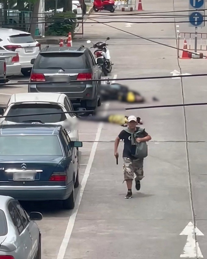 และมีผู้บาดเจ็บสาหัส ซึ่งเจ้าหน้าที่เร่งให้การปฐมพยาบาลและปั๊มหัวใจอย่างเร่งด่วน ผู้ก่อเหตุเป็นชาย สวมเสื้อสีดำ กางเกงขาสั้นสีครีม สะพายกระเป๋าเป้ลายทหาร