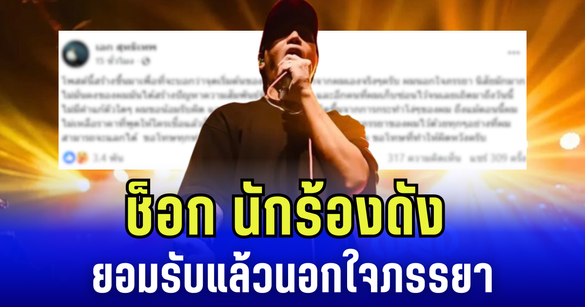 เรียกได้ว่าทำเอาแฟนคลับและแฟนเพลงต่าง ช็อกไปตาม ๆ กัน เมื่อนักร้องหนุ่มเสียงดี เอก สุทธิเทพ หรือ เอก เดอะวอยซ์ จากเวที The Voice Thailand ออกมาโพสต์ข้อความผ่านเฟซบุ๊กส่วนตัว เอก สุทธิเทพ เพื่อชี้แจงและยอมรับความจริงเกี่ยวกับปัญหาชีวิตรัก โดย หนุ่มเอก ได้ระบุว่า จุดเริ่มต้นของปัญหาทั้งหมด มาจากตัวเขาเอง พร้อมยอมรับว่า ผมนอกใจภรรยา นิสัยมักมาก ไม่มั่นคงของผม มันได้สร้างปัญหาความสัมพันธ์ที่มีกับภรรยา