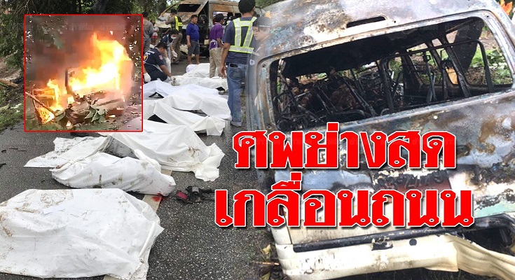 ที่เกิดเหตุพบเจ้าหน้าที่กู้ภัยต่างระดมกำลังกันเข้าสกัดแสงไฟที่กำลังลุกไหม้รถตู้คันดังกล่าว จนเพลิงสงบ ก่อนประสานอุปกรณ์ตัดถ่างเข้าช่วยเหลือผู้บาดเจ็บและเสียชีวิตที่ติดอยู่ภายในรถ