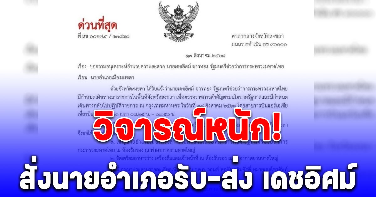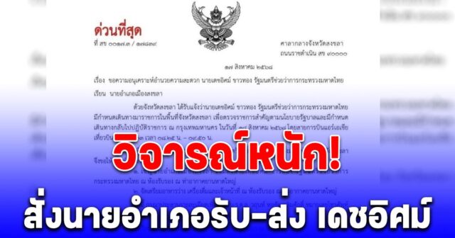 วิจารณ์สนั่น! ผู้ว่าฯสงขลา สั่งนายอำเภอรับ – ส่ง เดชอิศม์