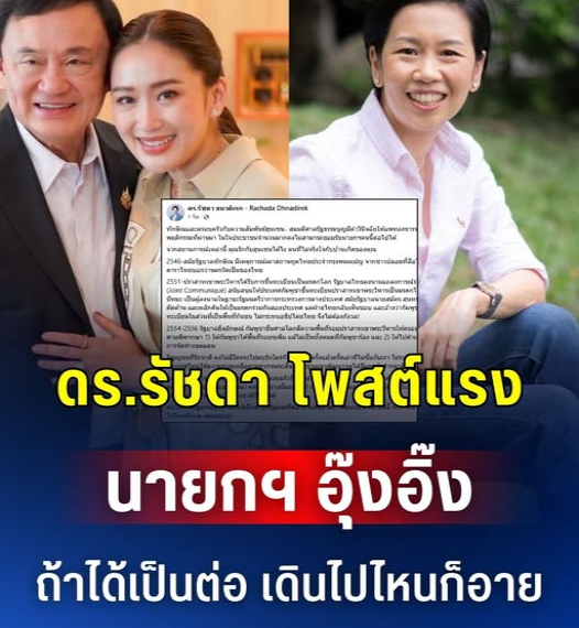 23 สิงหาคม 2658 ดร.รัชดา ธนาดิเรก อดีต ส.ส.ประชาธิปัตย์ ออกมาโพสต์เฟซบุ๊กวิจารณ์ ปมครอบครัวชินวัตรสานสัมพันธ์แนบแน่นกับฮุนเซน ผ่านเฟซบุ๊ก ดร.รัชดา ธนาดิเรก – Rachada Dhnadirek พร้อมระบุข้อความว่า