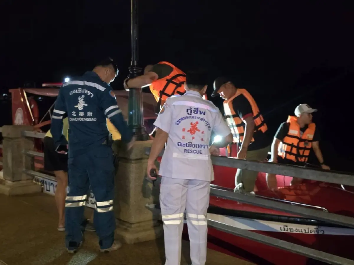 ล่าสุดช่วงเช้าวันที่ 27 พ.ค.68 นายปัญญา หลำประเสริฐ หัวหน้าหน่วยกู้ภัยฉะเชิงเทรา สั่งการเจ้าหน้าที่นำเต็นท์เข้ามาติดตั้งพร้อมอุปกรณ์สื่อสาร เพื่อรองรับทีมค้นหาจากเจ้าหน้าที่กู้ภัยหลายมูลนิธิ ที่ประสงค์จะเดินทางมาร่วมภารกิจค้นหาในครั้งนี้ ซึ่งเรือยนต์ติดตั้งเครื่องอุปกรณ์ซาวด์เดอร์สแกนค้นหาของหน่วยกู้ภัยฉะเชิงเทรา จะเริ่มทำการค้นหาช่วงเวลาประมาณ 11.30 น. โดยจะทำการแสกนบริเวณหน้าหอนาฬิกา สำนักงานทรัพย์สินส่วนพระมหากษัตริย์ตรงจุดนี้ เพราะคาดว่าร่างทั้ง 2 ยังคงมีน้ำหนักภายในตัว ไม่ลอยไปตามกระแสน้ำหากนับตามเวลาที่ตก ส่วนช่วงบ่ายจะมีการปรับแผนการค้นหาใหม่อีกครั้ง