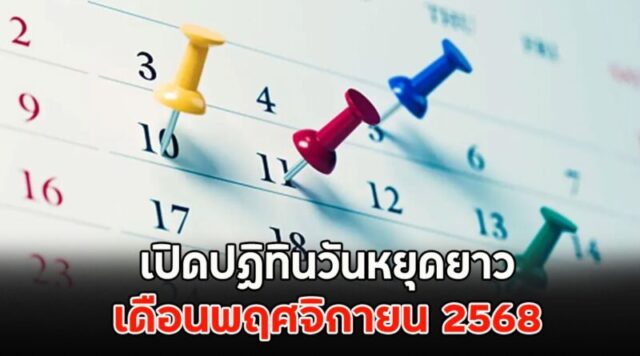 เปิดปฏิทินวันหยุดยาว เดือนพฤศจิกายน 2568