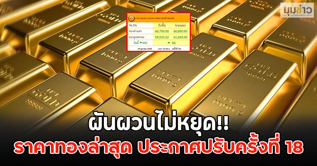 ราคาทองคำ วันที่ 29 ตุลาคม 2568 13:38 น. (ครั้งที่ 18)