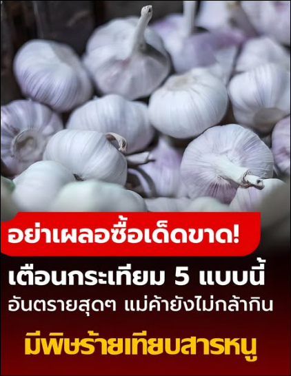 บทความที่รายงานผ่านทางเว็บไซต์ phunuso ได้เตือนถึง 5 ประเภทกระเทียมที่ “ไม่ควรซื้อเด็ดขาด” หากคุณไม่อยากเสี่ยงโรคร้าย! ใครจะคิดว่าเพียงกระเทียมเล็กๆ ก็มี “กับดัก” ที่อาจส่งผลต่อสุขภาพได้ถึงขั้นร้ายแรง? นับเป็นเรื่องที่คนทุกประเทศควรตระหนัก เพื่อป้องกันตนเองจากอันตรายที่อาจนำเข้าปาก-ลงท้องไปโดยไม่รู้ตัว ซึ่งผู้เขียนบทความกล่าวไว้ดังนี้